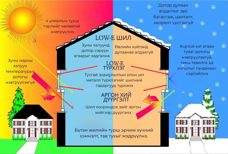 Low-E шилтэй шилэн багцыг хаалга, цонх, шилэн фасаданд ашигласнаар та гэр орон, ажлын байрныхаа ашиглалтын зардлыг урт хугацаанд хэмнэх болно. "Шилэн Хийц"ХХК нь 2006 онд Монголд анх удаа Low-E түрхлэгтэй шилийг оруулж ирэн, хэрэглэгчийн хүртээл болгосон олон жилийн туршлагатай компани юм.